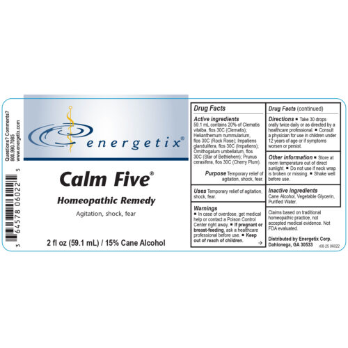 Calm Five is a homeopathic combination formula containing five flower essences traditionally used for emergency situations and every-day stress. Emotional concerns left unchecked often manifest into physical symptoms. Calm Five® can be helpful in times of acute stress or fright, when receiving bad news, or following accidents or injuries.